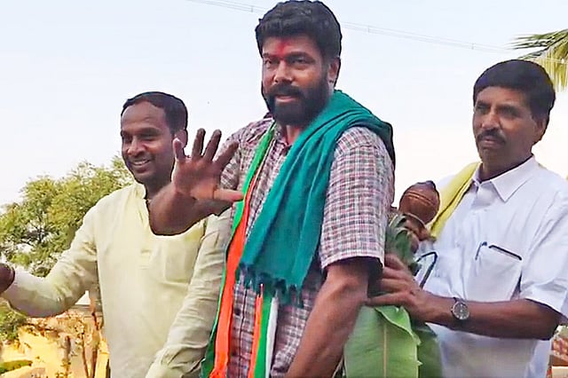 With hundreds of people gathered in Ragemuddenahalli, for his rally, Darshan Puttanaiah is seen as a star. His followers are loyal to the bone and one of them even has his face tattooed on his chest.