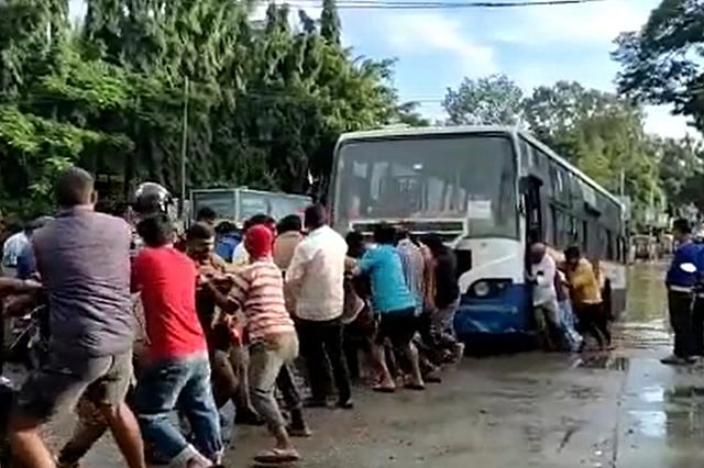One visual shared by a social media user, showed a Bengaluru Metropolitan Transport Corporation (BMTC) bus stuck in a flooded road, unable to move. The video showed tens of residents physically pulling the bus to dry land using a cable. Sharing the video, the user wrote: “In Bangalore, instead of the bus getting you to office, you have to get the bus to office.” Another user, sharing a video of vehicles struggling to move through the inundated roads, remarked that the ‘Silicon Valley of India’ is becoming the ‘Water Valley of India’.