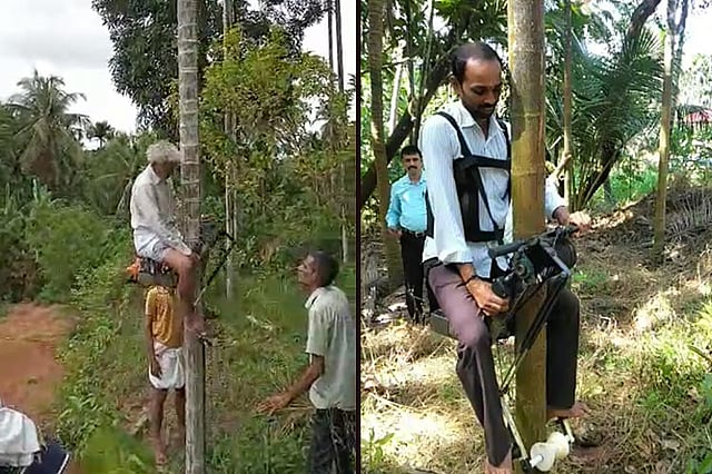 Strapped comfortably with a back-support and safety harness, in less than 30 seconds, a farmer scaled an arecanut tree as high as 30 metres. He did so with an indigenously-developed vertical scooter, which allowed him to climb the tree without taxing his muscles or bruising his arms or legs -- otherwise an inevitable part of the trade.