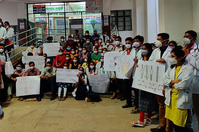 Over 700 post graduate medical students stop attending COVID-19 duty from Monday at Bangalore Medical College and Research Institute (BMCRI). The students belonged to Resident Doctors Association (RDA) of BMCRI and had demanded that the non-COVID-19 beds be retained and not be converted to COVID-19 beds.