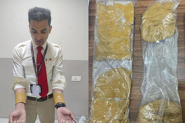 The Air India Express cabin crew member who was working on a Bahrain-Kochi flight was nabbed by the authorities at the Kerala' airport for smuggling over 1.4 kilograms of gold on Wednesday. Sources told IANS that the accused allegedly kept the gold wrapped around his hands and covered it under his full sleeves uniform.