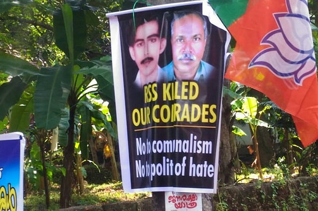 Posters condemning the killings allegedly committed by RSS, appeared at Pinarayi village. The posters also condemned the killing of journalist Gauri Lankesh.