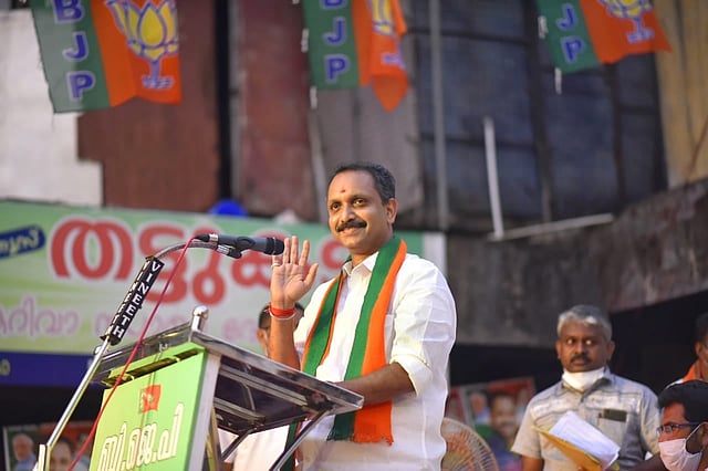 K Surendran, the BJP chief in Kerala, started his impassioned speech at an Assembly election rally in Pathanamthitta district’s Tiruvalla on Thursday claiming that the people of the state has accepted the party without any religious and political leaning. But, before long, he launched into an attack on the Muslim community in Kerala, raising the bogey of ‘love jihad’ — a term coined by right-wing groups, claiming that Muslim men are targeting Hindu women and forcefully converting them into Islam via marriage.