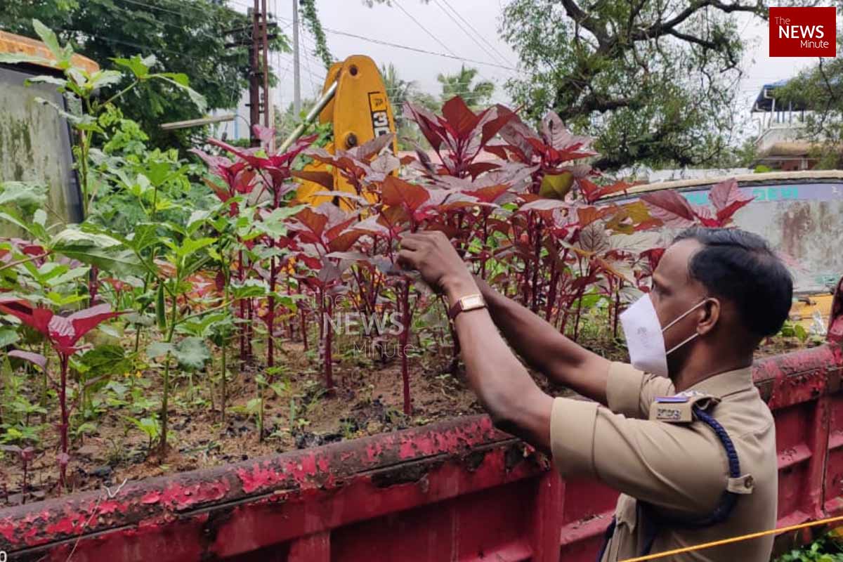 “We had a few mini lorries that we had caught for sand and soil smuggling. Three months ago, we decided to cultivate vegetables in them. It was a successful attempt – we got our first harvest last week. We gave the vegetables to our police canteen,” Simpson PT, a civil police officer from the station, says.