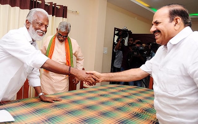 Members of CPI (M) including party secretary Kodiyeri Balakrishnan, Kannur district secretary P Jayarajan, BJP State President Kummanam Rajasekharan and RSS leader Gopalankutty took part in a peace meeting held in Kannur on Saturday.