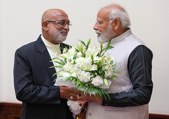Mar Raphael Thattil, the recently elected Major Archbishop of the Syro-Malabar Church, paid a visit to Prime Minister Narendra Modi in New Delhi on February 9. According to a statement by the church, the trip by Mar Thattil was to express his gratitude to PM Modi for writing a felicitation letter on Thattil's enthronement as the major archbishop.