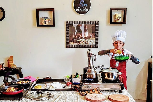 Until July, Saanvi was not allowed to cook using a gas stove or oven. She usually prepared food using an induction stove. However, her parents were surprised to see that she learned to cook on a gas stove within a month.