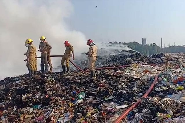 Brahmapuram waste plant, located at the Vadavucode-Puthencruz gram panchayat in the outskirts of Kochi city, houses all the degradable and non-biodegradable waste generated by the city's residents. With the waste treatment plant not functioning anymore, the garbage has been piling up in the place for many years. The dried garbage has constantly posed a fire threat and especially during summer.