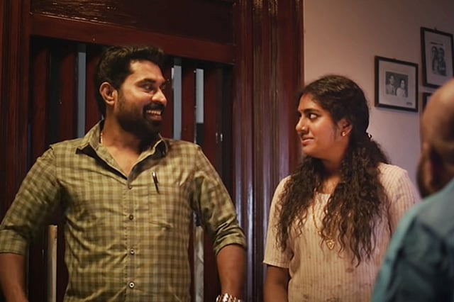 Most of the almost 1.5-hr long movie is shot in absolute silence or with very little dialogues or even background score. For most of the movie, the background score is filled with house noises, the dragging of chairs, the clanging of vessels against each other, the sounds of washing clothes, or the scratching of the floor by the broom. The story unfolds through the eyes and expressions of Nimisha, who plays the nameless wife in the story.