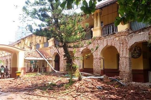 Two weeks ago, the school’s management secured a permit from the corporation to demolish the existing building and construct a new one in its place. The very next day, demolition work began and the terracotta tiles from the rooftop were pulled down.
