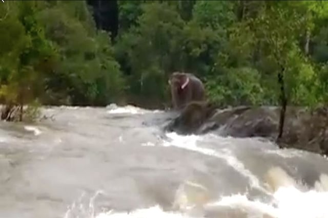 Pictures shared on social media show that the elephant managed to climb on to an elevated rock. Beneath the rock, the river is flowing in spate due to the opening of the dam. When locals realised that the elephant was stuck, they immediately informed the forest department, according to reports.