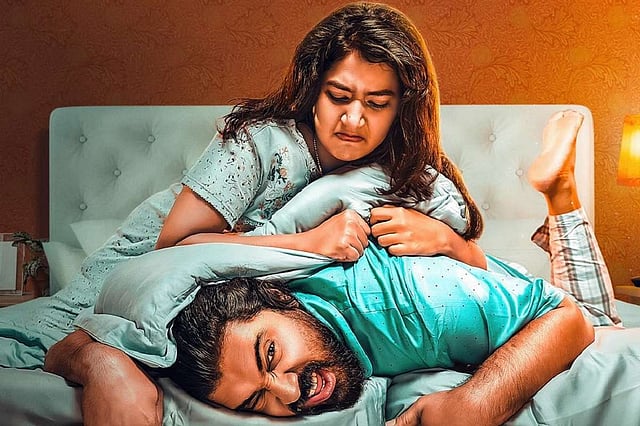 Straight off, in comforting sync sound, you are introduced to the marriage of Haripriya (Grace) and Pavithran (Nivin) through a series of conversations they have with Sivakumar (Sudheesh), a mutual friend trying to settle their marital differences. Sudheesh does a wonderful act here, sipping and slurping all that’s served before him, as he listens to the complaints about an irresponsible husband and a not-understanding-enough wife. You need to take a moment here to notice the actor’s transition from playing the eternal young man for decades to becoming this middle-aged peace-broker. And he does it so smoothly. The humour you were looking forward to comes in these early moments in the film, but they are not a preview of what’s to come.