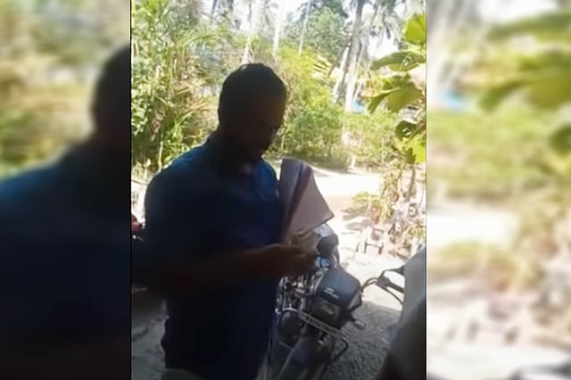 In the video, the man, who was later identified as Subash CS, a collection agent with the Kayamkulam Village Service Cooperative Bank, can be seen counting currency notes and handing it over to the senior citizen while polling officers had come to her house for postal voting. In the visuals, polling officers, including a policeman, can be seen standing in front of the woman’s house.