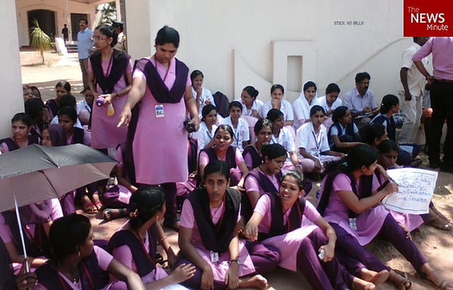 Outside the campus of the Upasana College of Nursing in Kerala’s Kollam district, a group of students, primarily girls have been sitting in protest since last Friday.