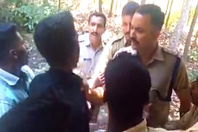 In a video that has now gone viral, a Kerala policeman is seen holding a Dalit activist by his collar and shouting at him.