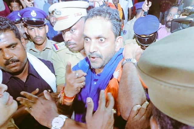 K Surendran was arrested from Nilakkal on Sabarimala hill on Saturday evening, after police stationed there stopped him from proceeding further. He was taken into preventive custody, and charged with disobeying the orders of a public officer. The Pathanamthitta Special Magistrate sentenced him to 14 days judicial custody on Sunday morning.