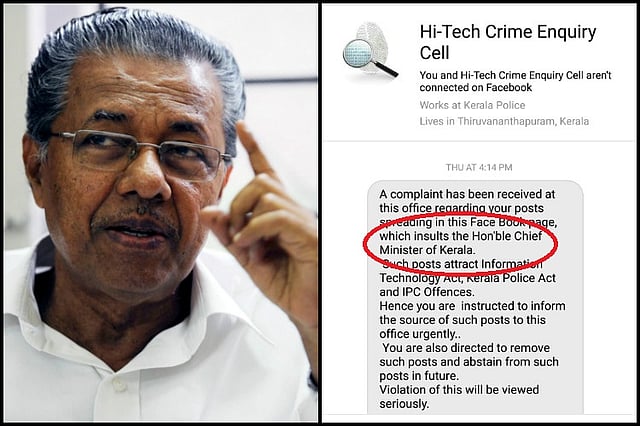 In a Facebook post on Friday, Outspoken published a screenshot of a message they received from the Hi-Tech cell, warning them against posting memes insulting the Kerala Chief Minister Pinarayi Vijayan.
