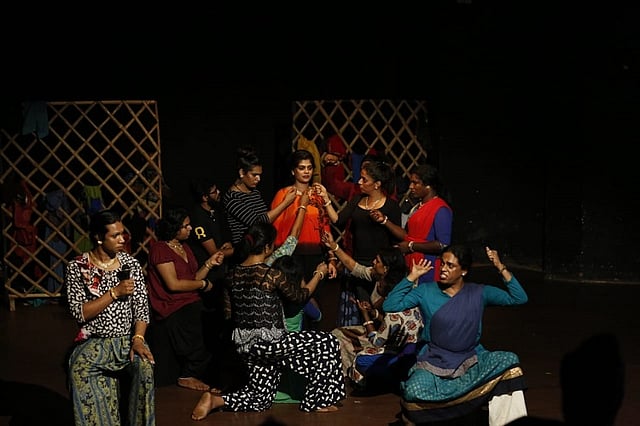 The play came through Dhwayah Arts and Charitable Society, which is working for the upliftment of transgender people in Kerala. It is the first play coming from the first transgender theatre group in the state, formed early this year – Mazhavil Dhwani.