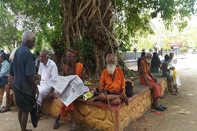 Bhaskaran, an 85-year-old man from Kundara in Kollam, came to the temple two years ago. He says that while his wife lives with his youngest son, he lives in the temple as his daughters-in-law are not in favour of him living with them. “I don’t have a house of my own. I have three sons. My wife lives with my younger son. She gave her property to him. My sons have no problems in looking after us, but their wives are not willing. Even the life of my wife is not good at my son’s home,” Bhaskaran says.