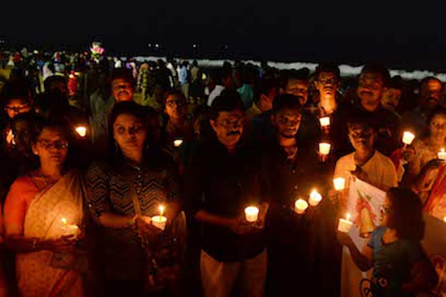 On Christmas day, about 50 people gathered at Sanghumugham Beach to light candles in the memory of the victims of the cyclone. Several passers-by joined in the prayers.
