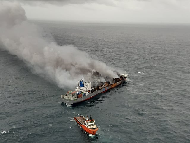 Meanwhile, other tugs like Garnet, Triton Liberty, and ETV Water Lily have joined the firefighting efforts. Reinforcement vessels Saroja Blessing and Boka Winger are expected to arrive on Sunday to assist with towing and firefighting.