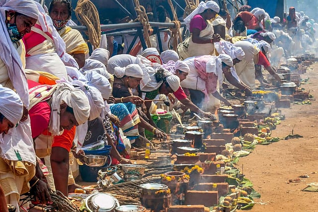 Lakhs of woman are taking part in the famed Attukal Pongala festival in the Kerala capital Thiruvananthapuram. Incidentally, the present festival on Tuesday, March 7, is taking place after a gap of two years following the COVID-19 pandemic. Last year's event was held amid tight protocols, with very few participants, compared to the past. Listed in the Guinness world records for the largest number of women participating in a single day to offer prayers, this festival is gaining more popularity with more devotees, even from other religions taking part.
