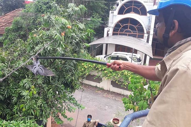 On the morning of May 13, Narayan’s family alerted him about a pigeon hanging upside down on an electric wire. It was trapped in the wire, tangled with something plastic wound around its leg. The wire was a line from the Kerala State Electricity Board (KSEB) in Thiruvananthapuram, coming to Narayan’s house in Kowdiar. The family realised that the pigeon was still alive and made desperate calls to the People for the Ethical Treatment of Animals (PETA). Narayan was advised to contact the KSEB since it was their line and only they could do something about it.