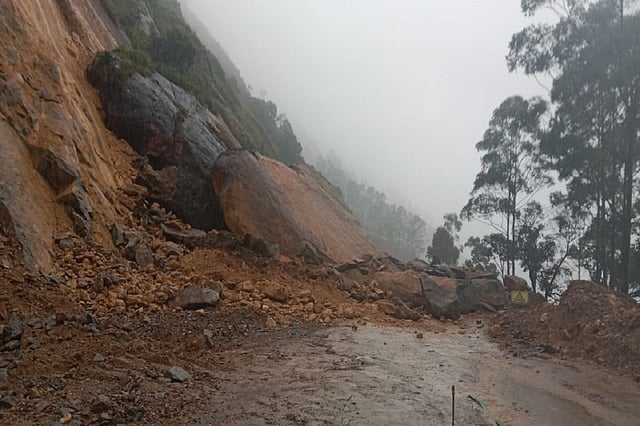 A major landslide occurred in the gap-road stretch of the Kochi-Dhanushkodi National Highway near Munnar on September 26, Sunday night. Massive rocks fell on the Muttukadu road due to heavy rain. According to revenue officials, the landslide was significant and more time was needed to clear the debris. According to Devikulam sub-collector Rahul Krishna Sharma, an order was issued to suspend traffic in Munnar-Devikulam through the gap-road stretch. Last year, a major landslide had similarly occurred in the same spot.