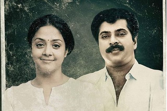 The photo, apparently carrying the marks and grains of an old one stuck in an album, has a younger Mammootty and a smiling Jyothika, both in white. The film is presented by Mammootty's production venture, Mammoottykampany, and is written by Adarsh Sukumaran and Paulson Skaria. Salu K Thomas is the director of photography and Francies Louis is the editor. Mathews Pulickan is the music composer.