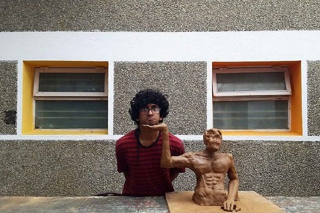 As a child he drew on the sides of his textbooks. But he didn’t just leave it there. When he finished school and it was time to apply for college, he tore these pictures from his textbooks, made them into a portfolio and sent it. Srishti College liked that and he got in.