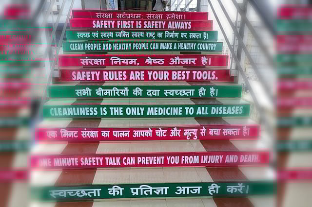 The official, however, dismissed criticism that Malayalam was kept out of the sign boards. He said that safety and cleanliness slogans were painted in Malayalam too on a different set of steps on another overbridge.