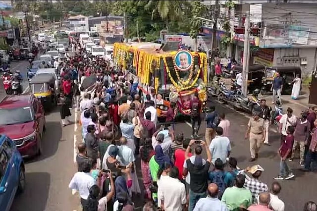The bus carrying the mortal remains of former Kerala Chief Minister Oommen Chandy had begun its journey from Thiruvananthapuram towards his home town in Puthuppally at 7 am on Wednesday, July 19. Four hours later, the funeral procession was still in Thiruvananthapuram. The bus moved inch by inch as people of all ages thronged the wayside to get a last glimpse of the once formidable politician and two-time Chief Minister of Kerala. Slogans of young Congressmen rose on the roads for one of the party's most revered leaders, who died at the age of 79 on Tuesday, July 18.