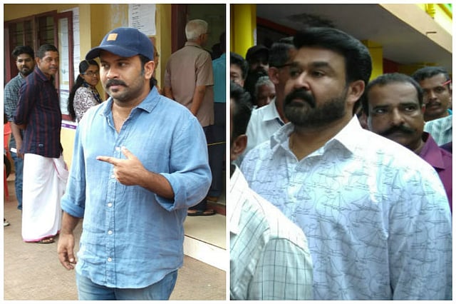 Mammootty with Ernakulam LDF candidate P Rajeev and UDF candidate Hibi Eden: