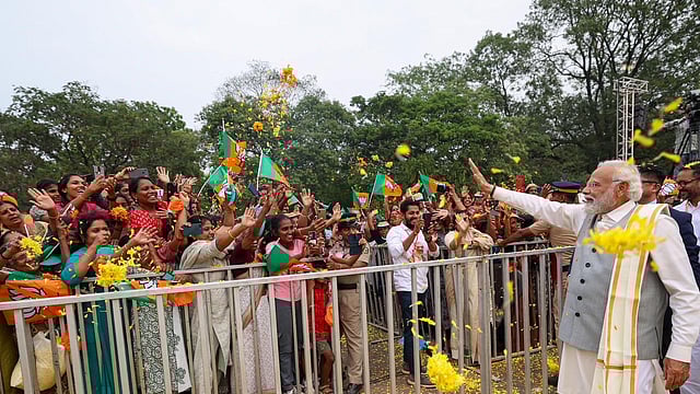 State BJP president K Surendran, actor Suresh Gopi and Kerala BJP Mahila Morcha leader Nivedida accompanied PM Modi in the vehicle during the rally. Actress Sobhana, PT Usha, Minnu Mani were also present. Eighty three old Mariakutty – who took to the streets with a begging bowl after the ruling government failed to pay the social welfare pension on time -- was also seen on the stage with the Prime Minister.