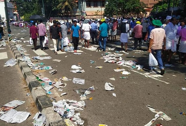 On November 27, people struggled to walk on the street from Spencer junction to Statue junction near secretariat in Thiruvananthapuram as both sides of the road were full of plastic bottles, waste paper and other plastic waste. The waste was strewn all over the road. A person from outside Thiruvananthapuram was heard asking a police officer what happened in the city. But the scattered waste is a common sight for residents of Thiruvananthapuram, after any protest near the Kerala Secretariat.