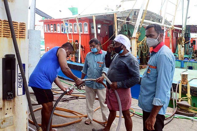 Only two boats were being fueled, readying for a trip later in the day. The diesel prices on all three pumps at Beypore harbour on that day hovered at around Rs 95 per litre for diesel. In 2019, a litre of diesel was around Rs 70.