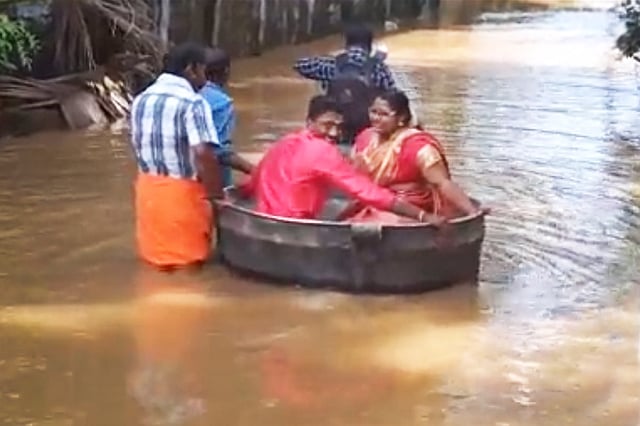 A relative who organised the 'vessel' trip said, "Some areas near the temple were almost submerged but we managed to bring both the bride and the groom on time."