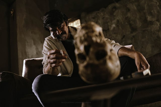 Before we go any further into the film, the setting must be described. Shaji Naduvil, the art director and his team, must have gone to great lengths, setting a semi-built eerie house as the centre of all action. The interior is dark and minimalistic, something the school of modern architecture would approve. Outside, the woods and the streams help to add mystery to the lonesome Luke, in stylish clothes, spreading himself over the rocks and facing the sky. Nimish Ravi’s camera zooms out to show Luke as a speck of contrast against the lovely colours of nature.