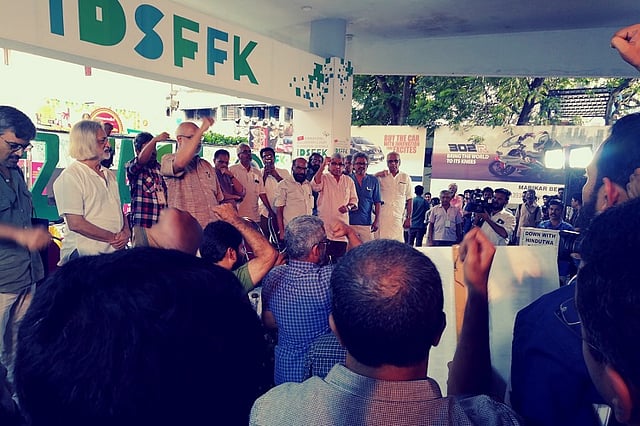 Baby, a politburo member of the CPI(M), speaks at the venue of the ongoing International Documentary and Short Film Festival in Thiruvananthapuram on a stage that hosts many known faces – renowned documentary filmmaker Anand Patwardhan, filmmaker Kavitha Lankesh, director and chairman of the Kerala Chalachitra Academy Kamal, vice chairman of the academy Bina Paul, director Dr Biju, director Sibi Malayil, actor Sajitha Madathil and poet Anwar Ali, among others.