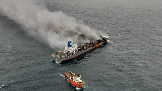 On June 9, another maritime crisis unfolded. About 44 nautical miles off Azhikkal beach, a Singapore-flagged container ship, the Wan Hai 503, caught fire after an internal explosion. It was on its way from Colombo to Mumbai and was carrying dangerous chemicals: 15.2 tonnes of lithium batteries, 90.2 tonnes of flammable resin, and benzophenone — a chemical known to harm phytoplankton, which forms the base of the ocean food chain.