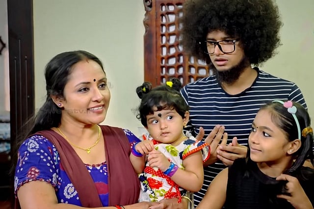 In one of the earlier episodes, Balachandran Thampi (Biju Sopanam) has brought himself a second-hand Maruti car with the money his wife Neelima (Nisha Sarang) has lent him and it turns out that the car isn’t working properly. After a round of verbal thrashing from Neelu, Balu enters their home with guilt. The miffed children and Neelu angrily call him out. A visibly hurt Balu talks about leaving the house. It’s a scene that had the promise of falling into an emotionally charged, melodramatic moment in the usual soap opera, with the accompaniment of blaring background music, and spinning close-up shots.