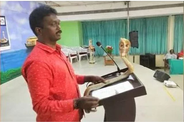 Vava Suresh spoke about ‘Experiences with Snakes’ at an event organised by the Nursing department of the medical college. He displayed the cobra right next to his mike while delivering his speech. He also spoke about the aftereffects of snakebites.