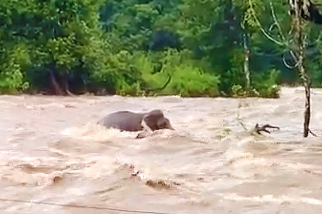 The tusker was stranded in the middle of the river on a small piece of land for several hours, as the river raged around the animal, which had stymied rescue attempts by fire force and forest officials gathered near Athirapally Falls. Subsequently, during its attempts to cross the river, the tusker got swept several meters downstream and managed to hang on to a broken tree in the middle of the river. Thereafter, it slowly managed to move closer to the other side of the river and then disappeared from view, raising hopes that it would soon reach the safety of the forest. Visuals also showed the tusker periodically dipping its trunk in the river to assess the water depth as it tried to move towards the other side. According to local residents, the elephant had come to the river from the forest looking for food in the night, but got stranded.