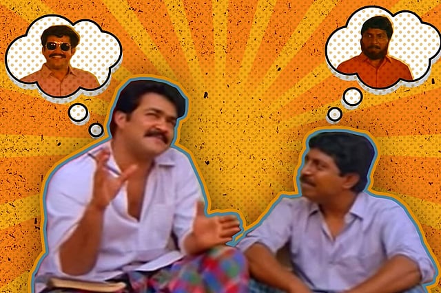 Sreenivasan is known for self-deprecating humour and he has no trouble playing second fiddle to Mohanlal, the star, in a script written by him. It's a dynamic that the duo has exploited on screen to uproarious results several times, and mostly in Sathyan Anthikad and Priyadarshan films. They've played friends, employer-employee, and even enemies but the audience never got tired of their sparring. It's a bromance that kept evolving and beating the predictable, with the humour mostly arising from situational comedy.