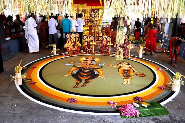 But in Peringottukara, the legend differs slightly. Siva was attracted to a Pulaya woman, who was hesitant to consummate the relationship that she asked Parvathy Devi for help. Parvathy then disguised herself as the Pulaya woman and after obtaining Siva’s semen poured it into a wild fruit and gifted it to the Pulaya woman. The fruit later turned into the child Chaathan and took the Avatar of Lord Vishnu to visit his father at Mount Kailasam.