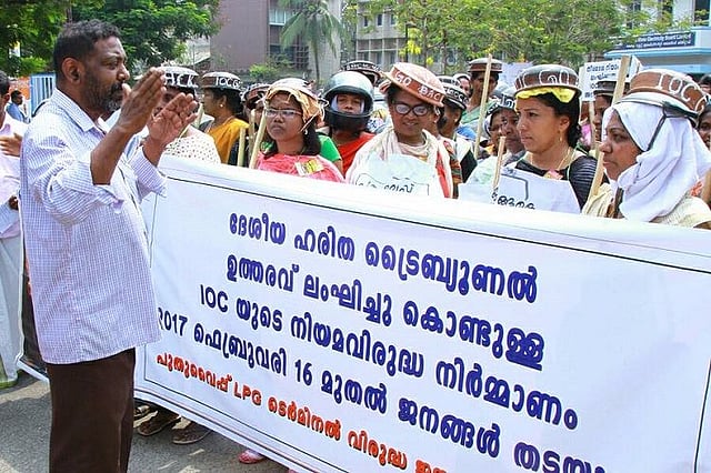 “This is the only place in the world such a huge terminal that stores such a high amount of LPG comes up in a highly populated area, where almost 65000 people live. This terminal is just 30 metres away from the houses here. This will result in a huge tragedy,” says Ajay Ghosh, Convenor, LPG Terminal Virudha Janakeeya Samara Samithi.
