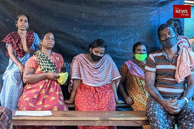 Amid a downpour, the residents sit under the leaky pavilion, which serves as their kitchen. They talk to TNM at length about the dire conditions they were forced to live in, their fight to survive, and allege that it is state apathy that has forced them to become homeless.