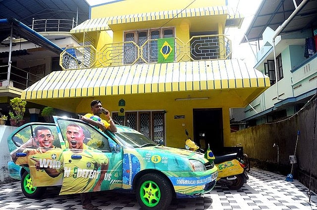 Sudheer has painted his two-storey house in yellow and blue, the colours of the Brazilian flag. Not just his house, but his Ford Ikon car as well as his Activa both adorn the colours of the team that Sudheer worships.