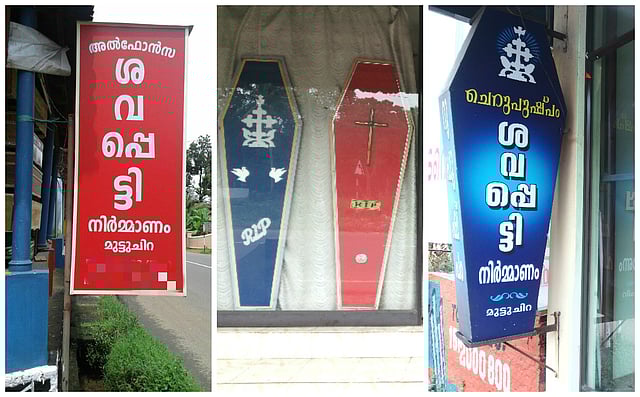 ഒരുപക്ഷേ വിതുമ്പലുകൾക്കും തേങ്ങലുകൾക്കും പൊട്ടിക്കരച്ചിലുകൾക്കുമപ്പുറം കേരളത്തിലെ ശവസംസ്കാരച്ചടങ്ങുകൾക്ക് പൊതുവായി ഒന്നുകൂടി ഉണ്ട്. കോട്ടയം ജില്ലയിലെ മുട്ടുച്ചിറയിൽ നിർമിച്ച ശവപ്പെട്ടികൾ.