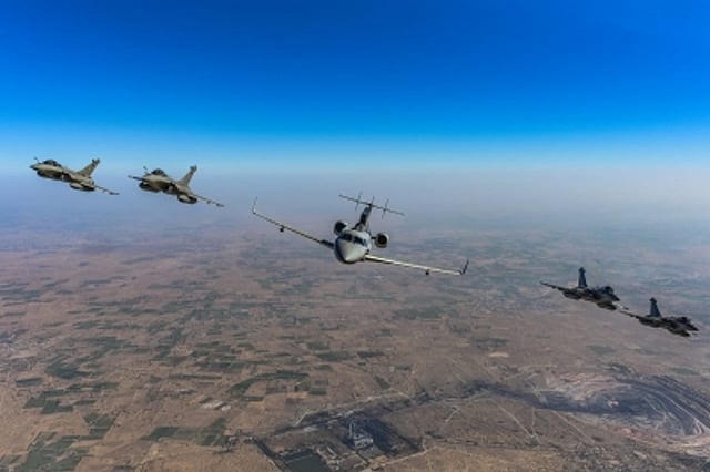 The grand finale of the 74th Republic Day parade presented the Fly Past, a stunning air show by 45 aircraft of the Indian Air Force (IAF), one from the Indian Navy and four helicopters of the Indian Army. The 50 aircraft including old and modern jets and helicopters like Rafale, MiG-29, Su-30, Sukhoi-30 MKI Jaguar, C-130, C-17, Dornier, Dakota, LCH Prachanda, Apache, Sarang and AEW&C participated in the Fly Past.